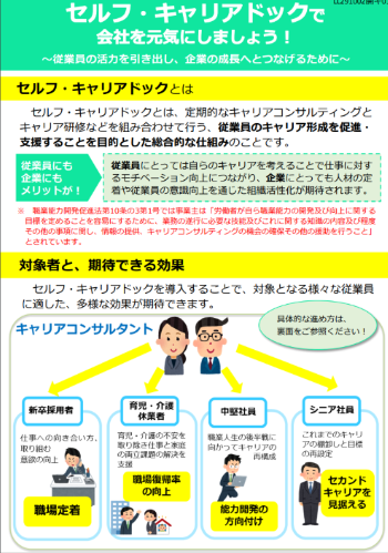 「セルフ・キャリアドック」とは、厚生労働省が推奨している、社員が自律的に成長できる企業内人材育成のマネジメントシステムのことです。